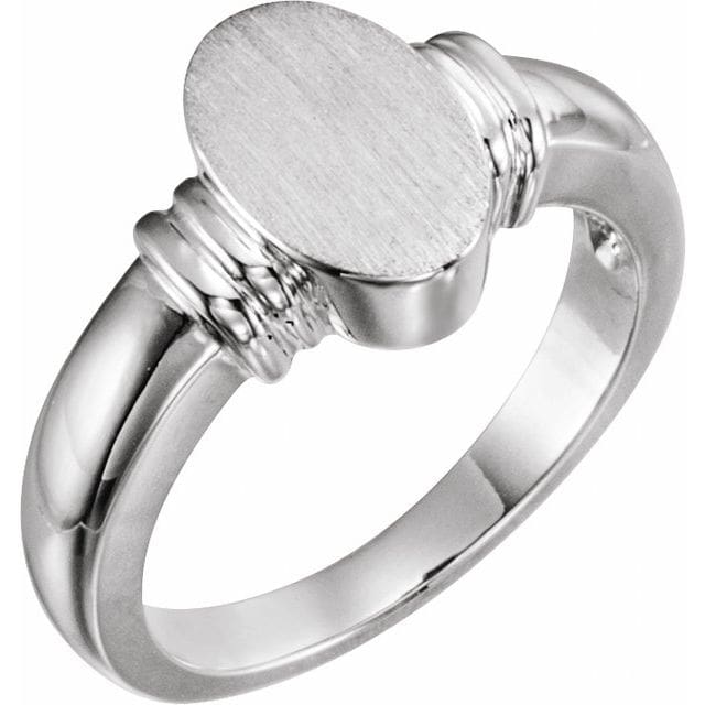 14K White 11.1×7.1 mm Oval Signet Ring