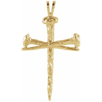 14K Yellow 26×18.25 mm Nail Design Cross Pendant