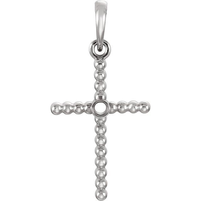 14K White 19.1×9.5 mm Beaded Cross Pendant Mounting for 1.5 mm Round