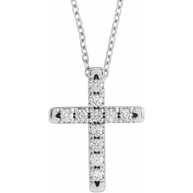 14K White 2 mm Round 16-Stone French-Set Cross Pendant Mounting