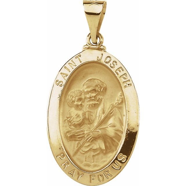 14K White 23×16 mm Hollow Oval St. Joseph Medal