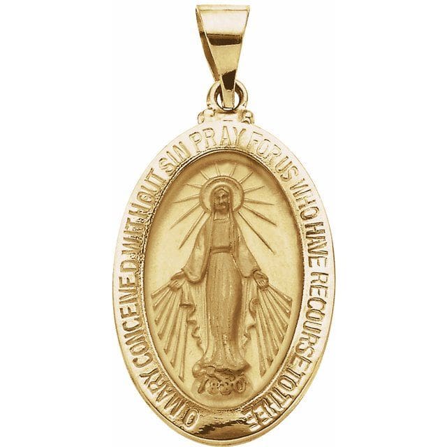 14K White 23×16 mm Oval Hollow Miraculous Medal