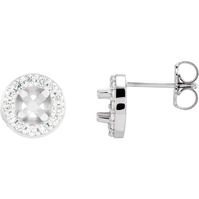 14K White 3.4 mm Round 1/8 CTW Natural Diamond Halo-Style Semi-Set Earrings