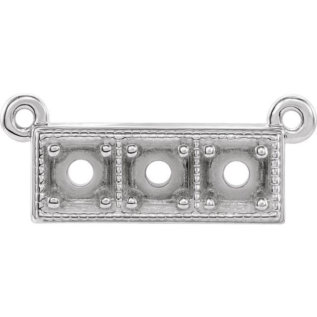 14K White 3 mm Round Three-Stone Granulated Bar Necklace Mounting