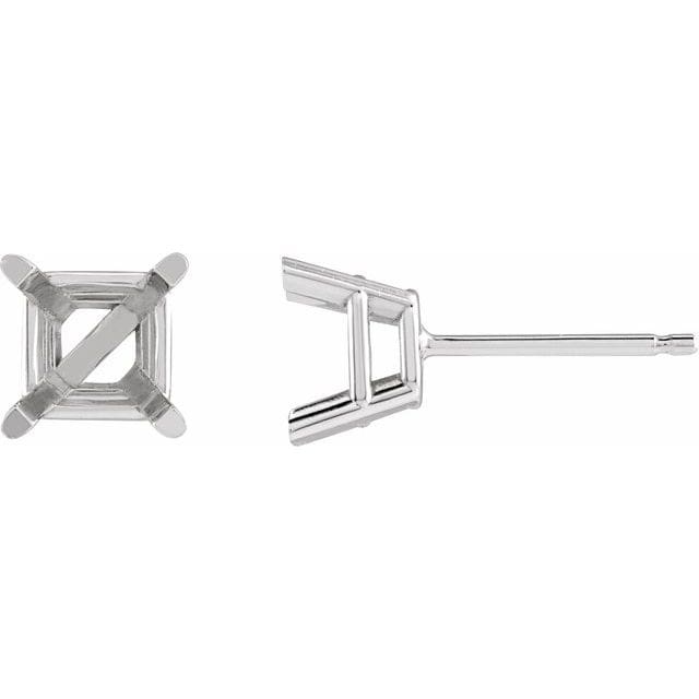 14K White 3 mm Square 4-Prong Lightweight Earring Mounting
