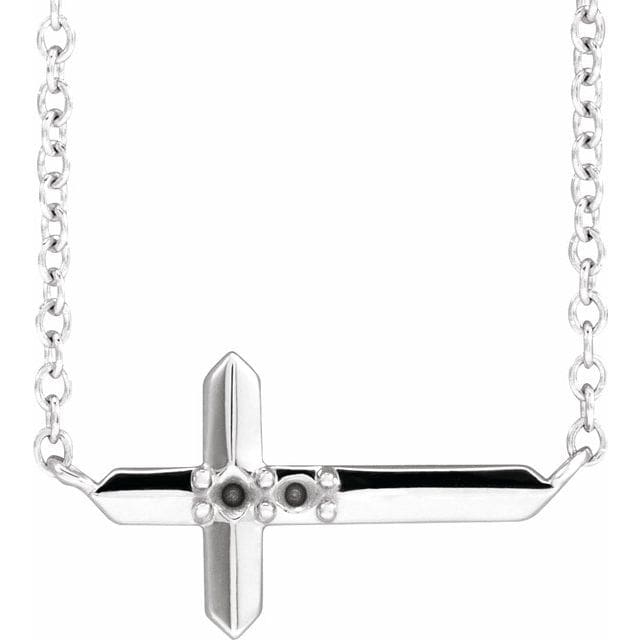 14K White 3-Stone Family Sideways Cross 18″ Necklace Mounting