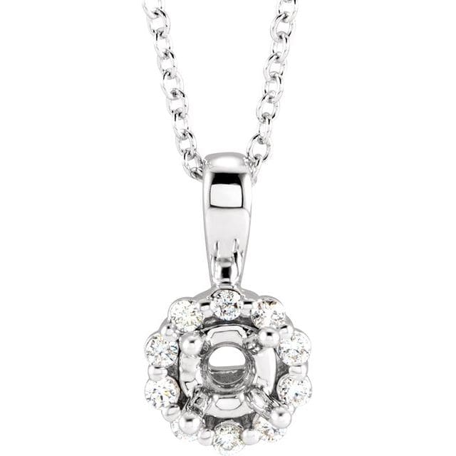 14K White 4.5 mm Round 1 CTW Natural Diamond Semi-Set Halo-Style 16-18″ Necklace