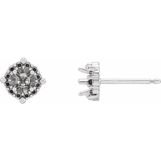 14K White 5 mm Round Rose-Cut 3-Prong Claw Earring Mounting