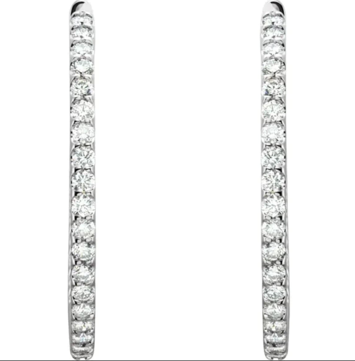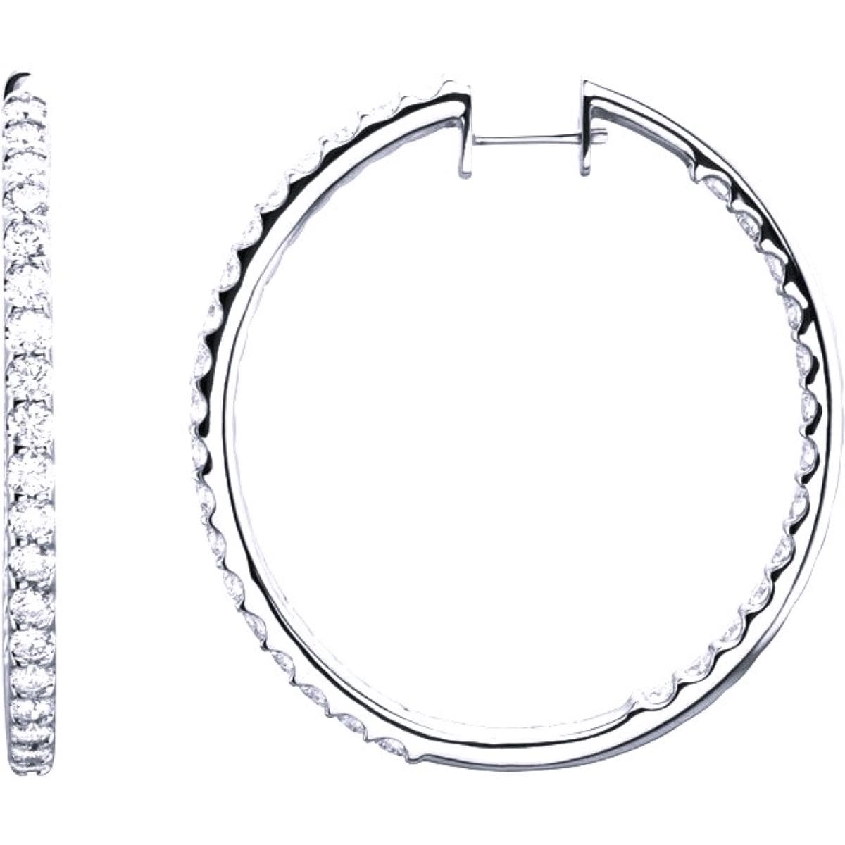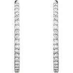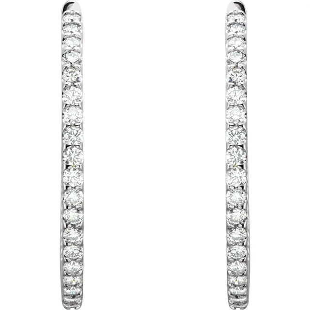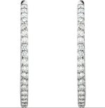 14K White 5 CTW Natural Diamond Inside-Outside 2 Inches Hoop Earrings