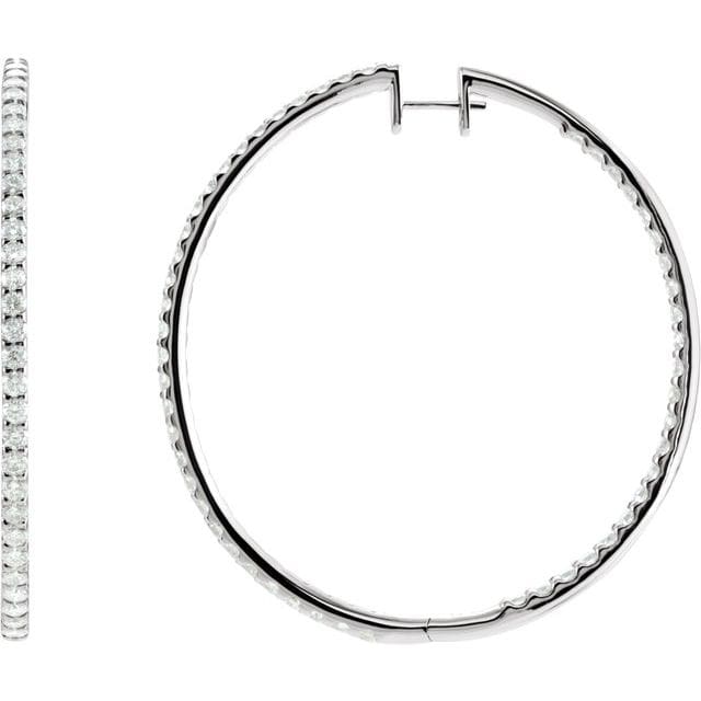 14K White 5 CTW Natural Diamond Inside-Outside 51 mm Hoop Earrings