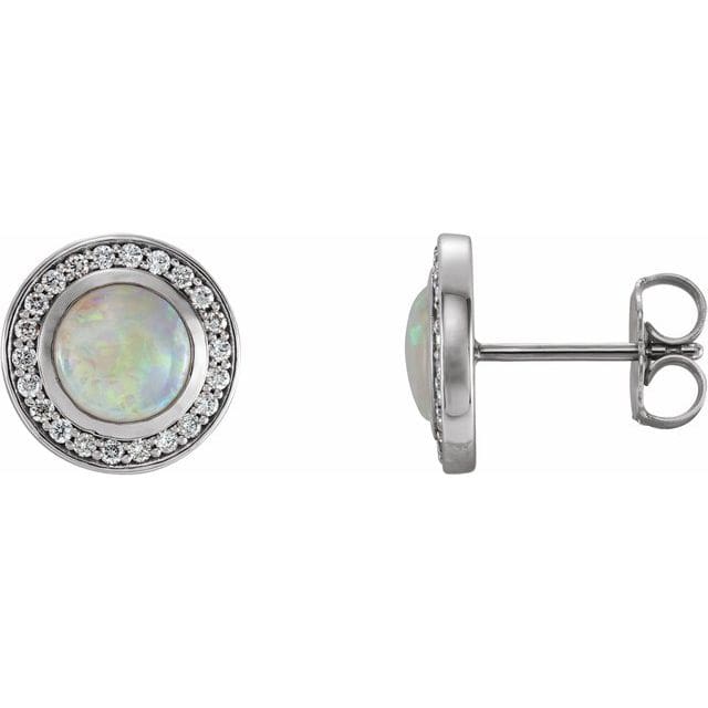 Be the first to review “14K White 5 mm Natural White Opal & 1/6 CTW Natural Diamond Halo-Style Earrings” Cancel reply