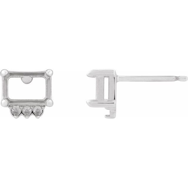 14K White 6×4 mm Emerald 4-Prong Accented Earring Mounting