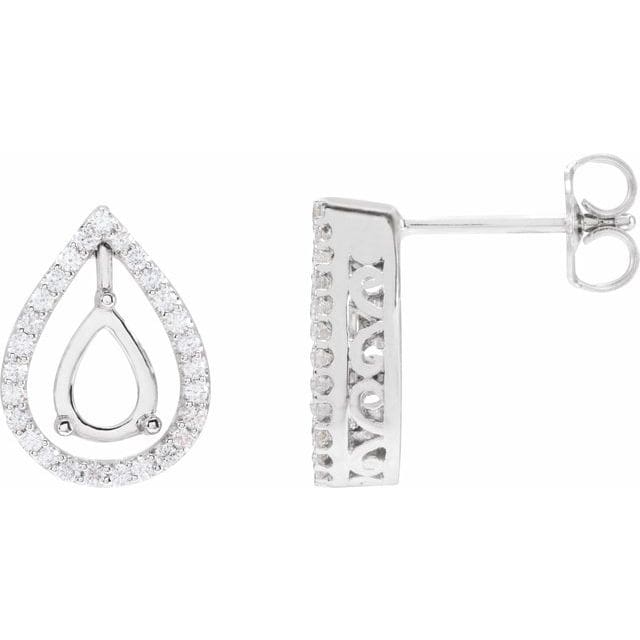 14K White 7×5 mm Pear 1/3 CTW Natural Diamond Semi-Set Earrings