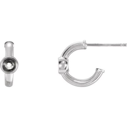 14K White 3 mm Round Bezel-Set Huggie Hoop Earring Mounting