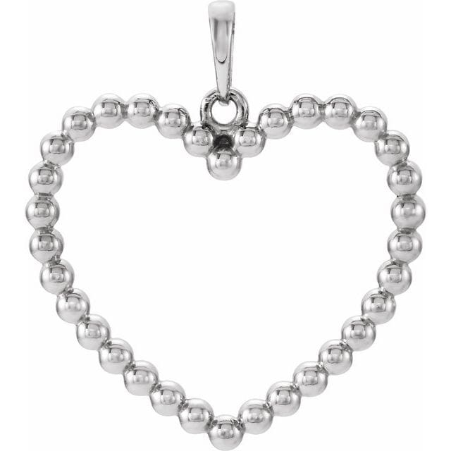 14K White Beaded Heart Pendant