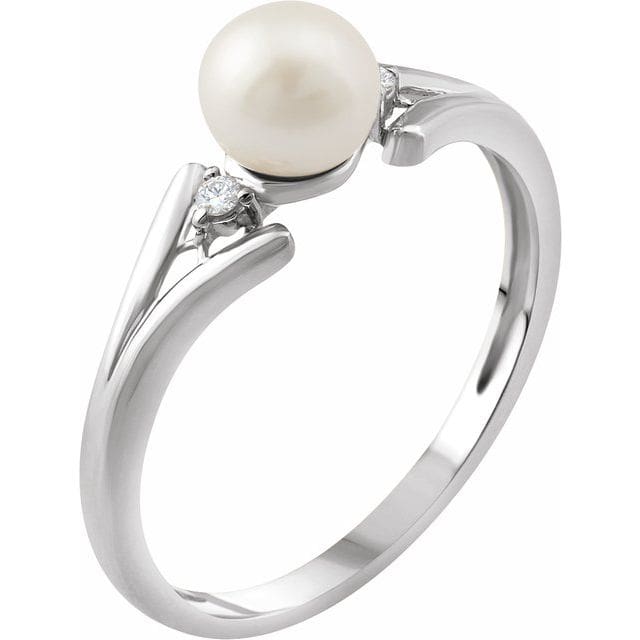 14K White Cultured White Freshwater Pearl & .03 CTW Natural Diamond Ring
