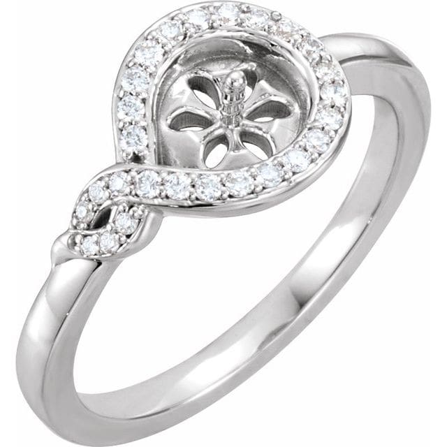 14K White Accented Ring Mounting for 9 mm Pearl