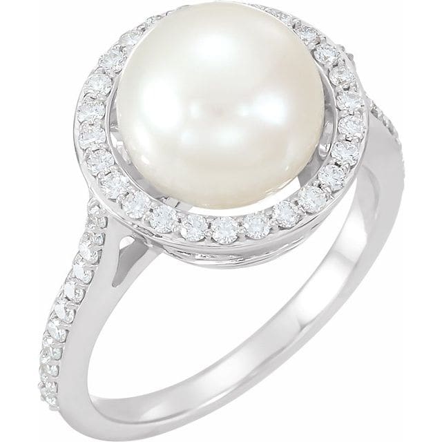 14K White Cultured White Freshwater Pearl & 3/8 CTW Natural Diamond Ring