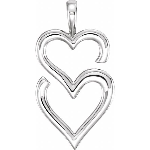 14K White Double Heart Slide Pendant