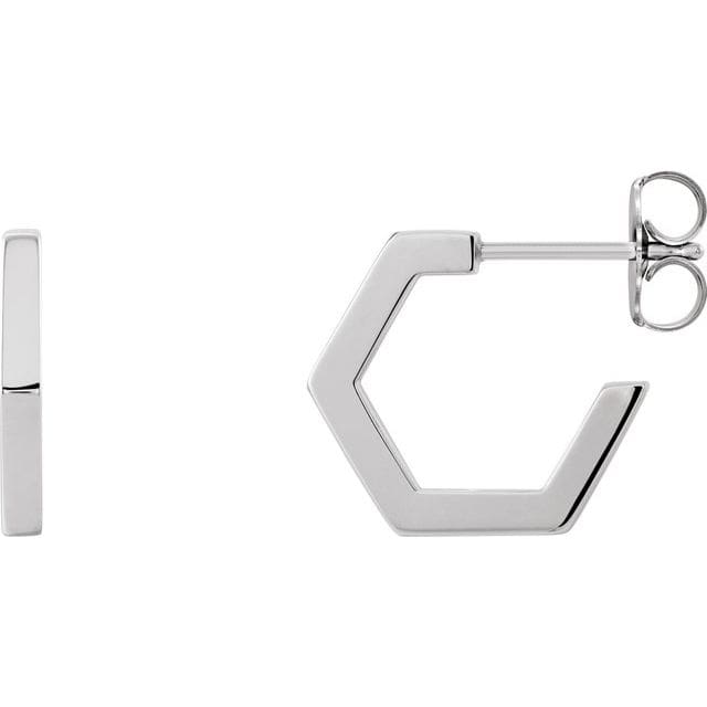 14K White Geometric 12.6 mm Hoop Earrings