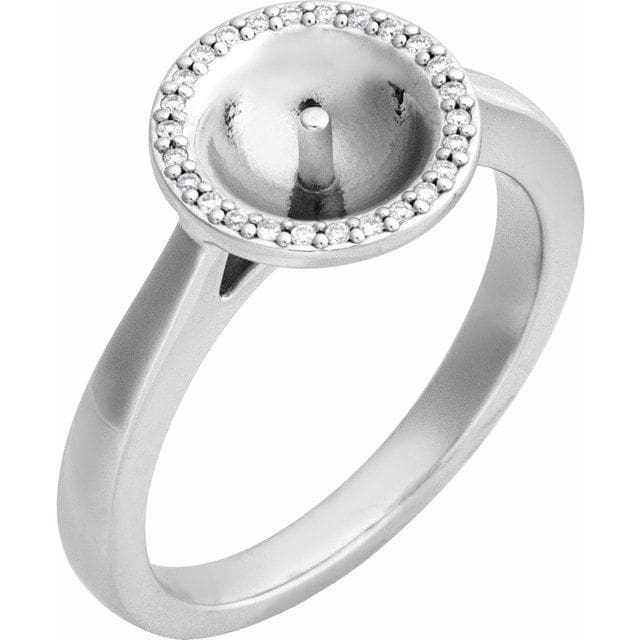 14K White Halo-Style Ring Mounting for 6 mm Pearl