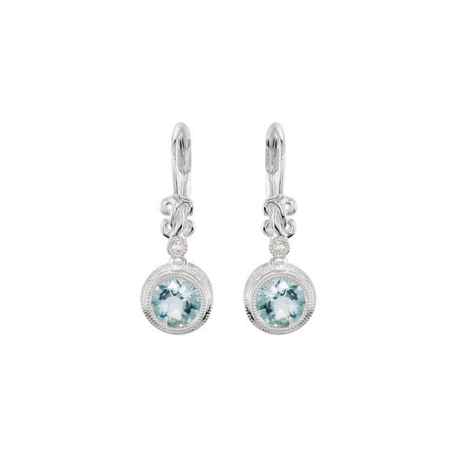 14K White Natural Aquamarine & .02 CTW Natural Diamond Earrings