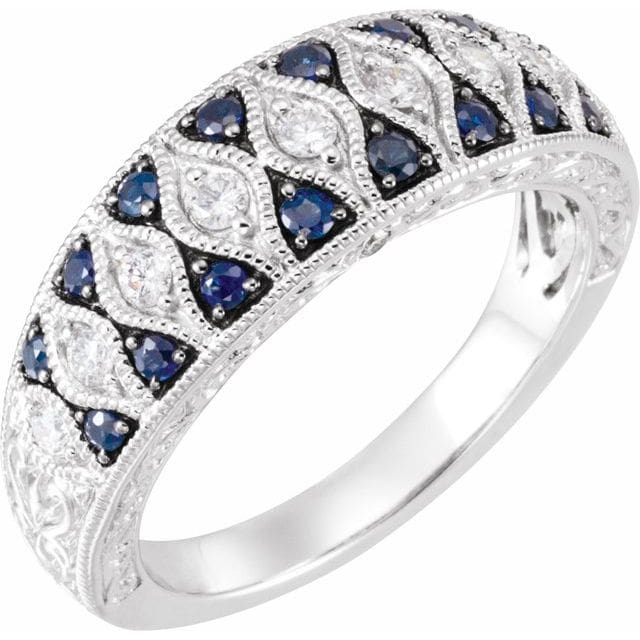 14K White Natural Blue Sapphire & 1/4 CTW Natural Diamond Ring