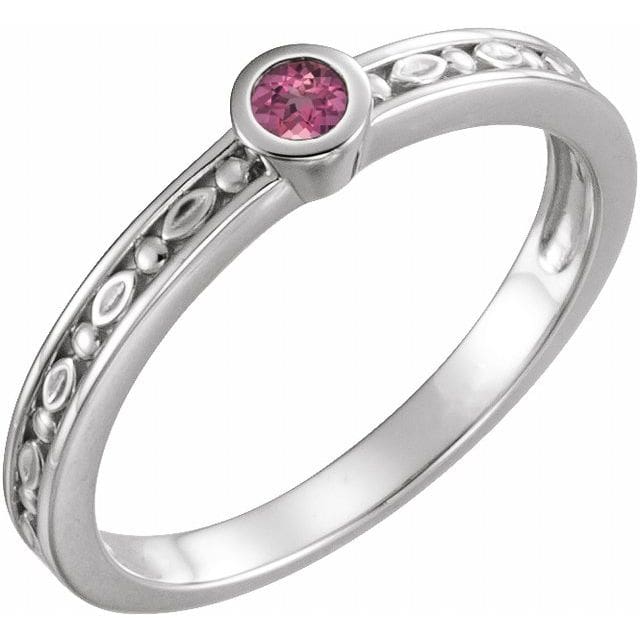 14K White Natural Pink Tourmaline Family Stackable Ring