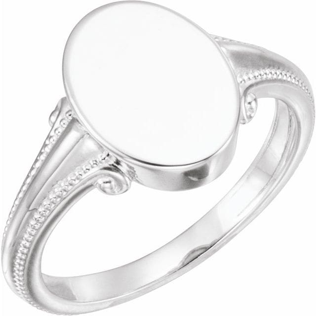 14K White 13x5.5 mm Oval Signet Ring