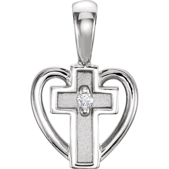 14K Yellow .01 CT Natural Diamond Cross & Heart Pendant
