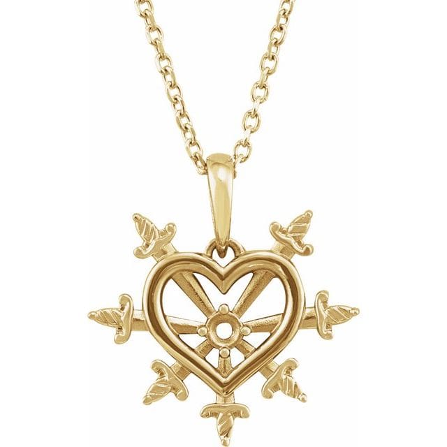 14K Yellow .03 CT Natural Diamond Heart & Daggers 16-18″ Necklace