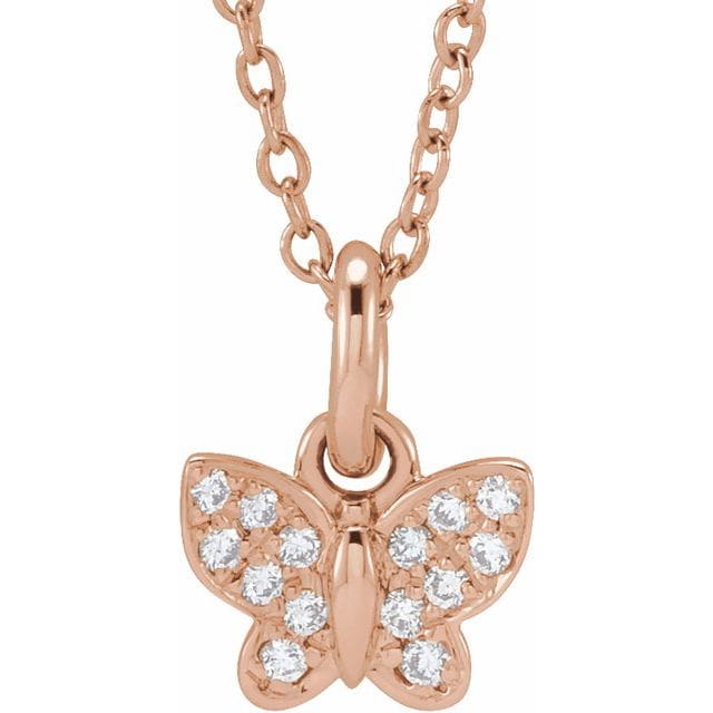 14K Yellow .06 CTW Natural Diamond Youth Butterfly 15″ Necklace