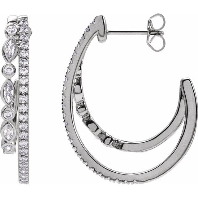 14K White 1/4 CTW Natural Diamond Inside/Outside 13.7 mm Hoop Earring
