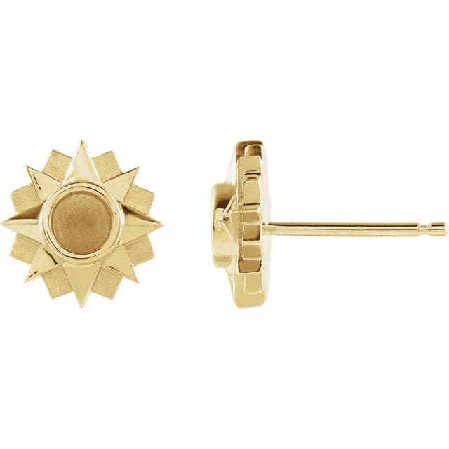14K Yellow Natural Black Onyx Geometric Cabochon Earrings