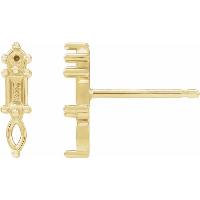 14K White 3 mm Round Beaded Earring Mounting