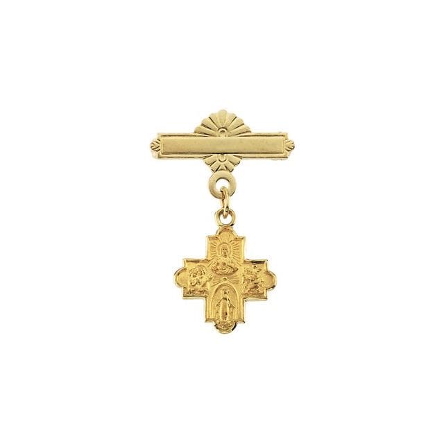 14K Yellow 12×12 mm Four-Way Medal Baptismal Pin