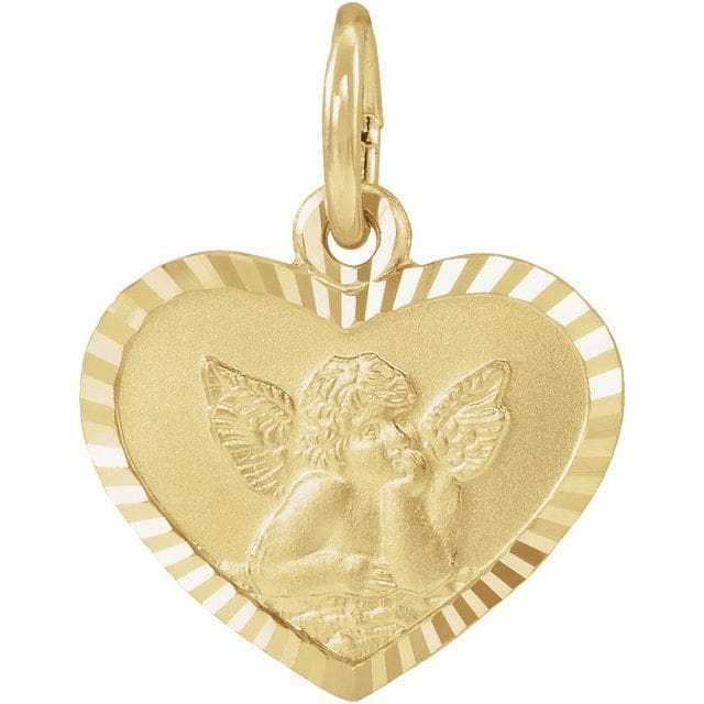 14K Yellow 12×9 mm Heart Cherub Angel Medal