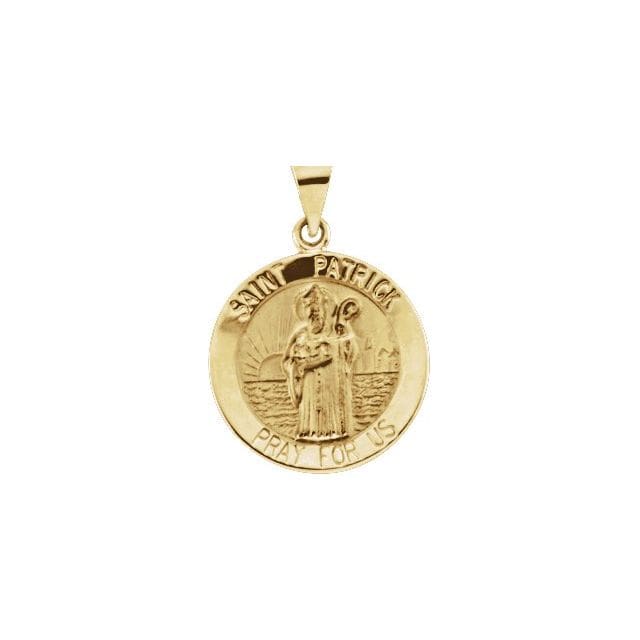 14K Yellow 18 mm Hollow Round St. Patrick Medal