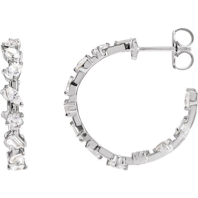 14K White 1/4 CTW Natural Diamond Inside/Outside 13.7 mm Hoop Earring