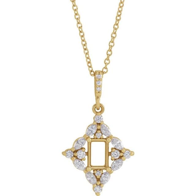 14K Yellow 6×4 mm Emerald 1/3 CTW Natural Diamond Semi-Set Halo-Style 16-18″ Necklace