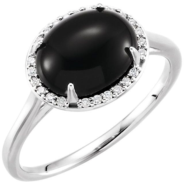 14K White Cultured Black Akoya Pearl & .03 CTW Natural Diamond Ring