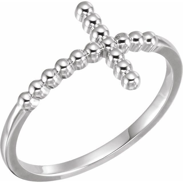 14K Yellow Beaded Sideways Cross Ring