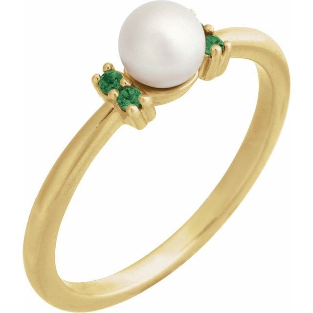 14K Yellow Cultured Freshwater Pearl & Natural Pink Tourmaline Ring