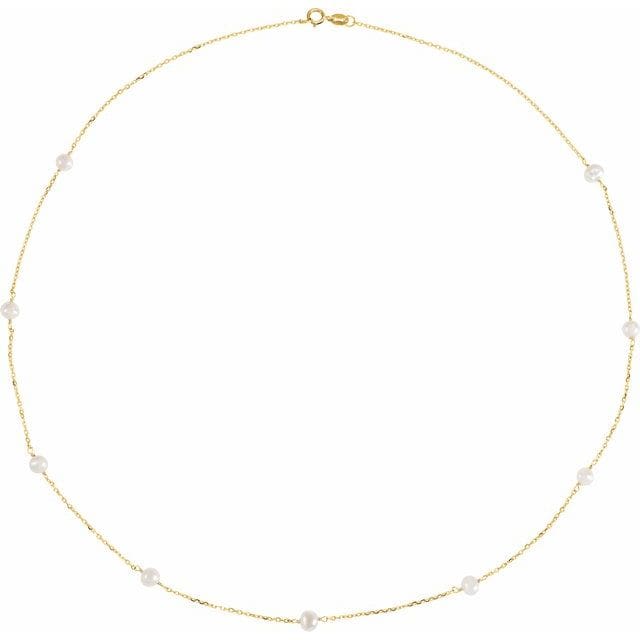 14K Yellow Cultured White Freshwater Pearl 9-Station 18″ Necklace