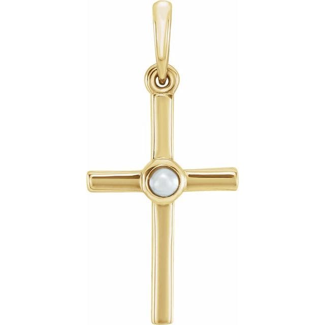14K Yellow Cultured White Freshwater Pearl Cross Pendant