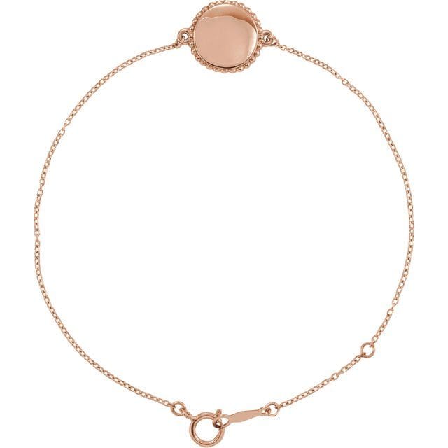 14K Yellow Engravable Beaded Disc 6 1/2-7 1/2″ Bracelet