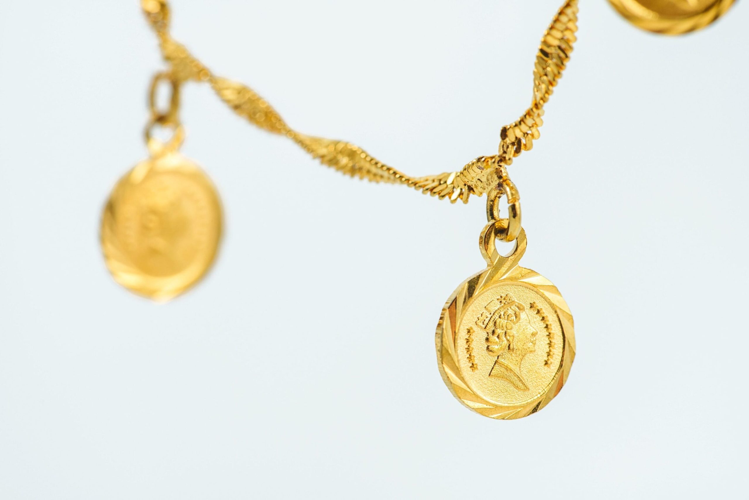 14k Yellow- Gold Necklace with Queen Elizabeth’s motifs. This gold necklace is gorgeous in nature. as it sets in 14k gold metal purity, well polished.