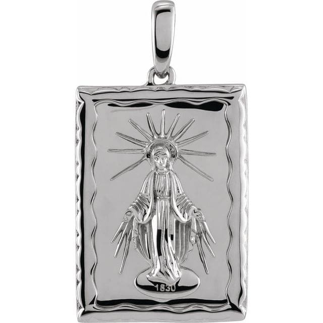 14K White Black Enamel Miraculous Medal Pendant