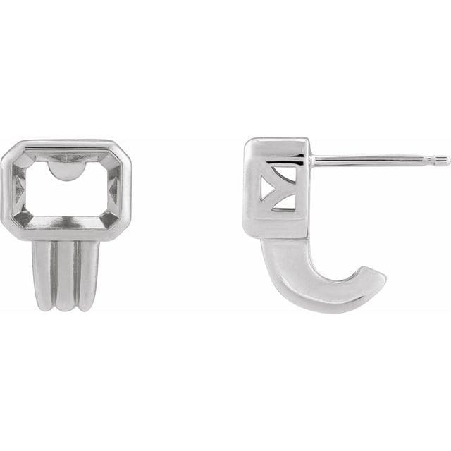 14K White 6x4 mm Emerald 4-Prong Accented Earring Mounting