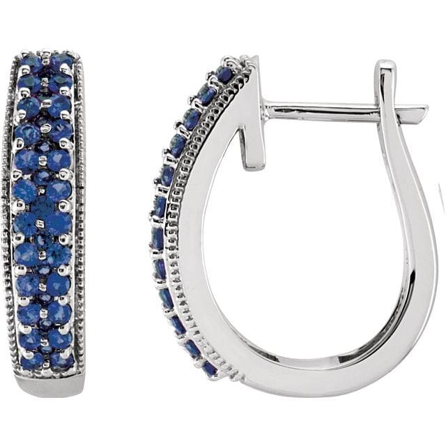 14K Yellow Natural Blue Sapphire 18.5 mm Hoop Earrings